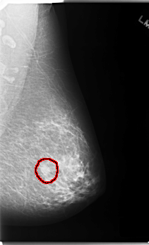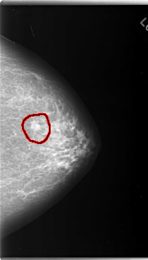 FILE: C_0124_1.LEFT_MLO.OVERLAY TOTAL_ABNORMALITIES 1 ABNORMALITY 1 LESION_TYPE MASS SHAPE OVAL MARGINS MICROLOBULATED ASSESSMENT 4 SUBTLETY 5 PATHOLOGY MALIGNANT TOTAL_OUTLINES 1 BOUNDARY |
