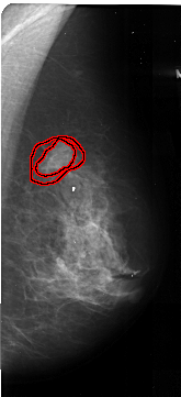 FILE: A_1035_1.RIGHT_CC.OVERLAY TOTAL_ABNORMALITIES 1 ABNORMALITY 1 LESION_TYPE MASS SHAPE IRREGULAR MARGINS SPICULATED ASSESSMENT 5 SUBTLETY 5 PATHOLOGY MALIGNANT TOTAL_OUTLINES 2 BOUNDARY CORE |