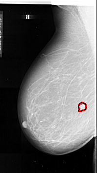 FILE: A_1090_1.LEFT_MLO.OVERLAY TOTAL_ABNORMALITIES 1 ABNORMALITY 1 LESION_TYPE MASS SHAPE IRREGULAR MARGINS SPICULATED ASSESSMENT 5 SUBTLETY 4 PATHOLOGY MALIGNANT TOTAL_OUTLINES 1 BOUNDARY |