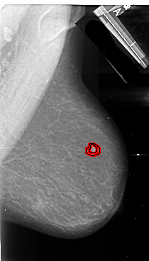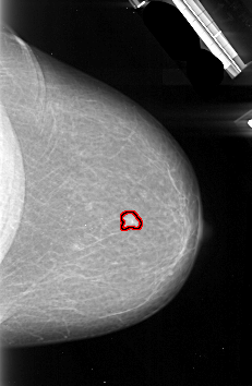 FILE: A_1093_1.RIGHT_CC.OVERLAY TOTAL_ABNORMALITIES 1 ABNORMALITY 1 LESION_TYPE MASS SHAPE IRREGULAR MARGINS SPICULATED ASSESSMENT 5 SUBTLETY 4 PATHOLOGY MALIGNANT TOTAL_OUTLINES 1 BOUNDARY |