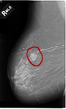 FILE: C_0031_1.RIGHT_MLO.OVERLAY TOTAL_ABNORMALITIES 1 ABNORMALITY 1 LESION_TYPE MASS SHAPE IRREGULAR MARGINS MICROLOBULATED ASSESSMENT 5 SUBTLETY 5 PATHOLOGY MALIGNANT TOTAL_OUTLINES 1 BOUNDARY |