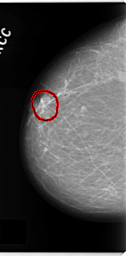 FILE: C_0155_1.RIGHT_CC.OVERLAY TOTAL_ABNORMALITIES 1 ABNORMALITY 1 LESION_TYPE MASS SHAPE OVAL MARGINS SPICULATED ASSESSMENT 5 SUBTLETY 5 PATHOLOGY MALIGNANT TOTAL_OUTLINES 1 BOUNDARY |