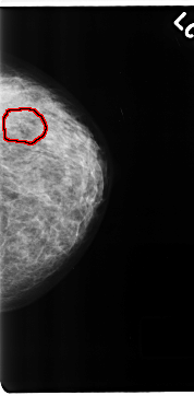 FILE: C_0199_1.LEFT_MLO.OVERLAY TOTAL_ABNORMALITIES 1 ABNORMALITY 1 LESION_TYPE CALCIFICATION TYPE PLEOMORPHIC DISTRIBUTION CLUSTERED ASSESSMENT 5 SUBTLETY 4 PATHOLOGY MALIGNANT TOTAL_OUTLINES 1 BOUNDARY |