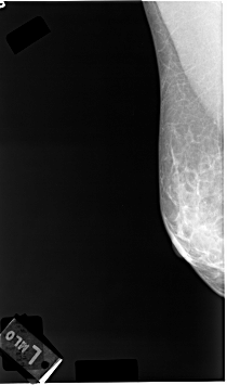 FILE: C_0039_1.LEFT_MLO.OVERLAY TOTAL_ABNORMALITIES 1 ABNORMALITY 1 LESION_TYPE CALCIFICATION TYPE AMORPHOUS DISTRIBUTION DIFFUSELY_SCATTERED ASSESSMENT 3 SUBTLETY 4 PATHOLOGY MALIGNANT TOTAL_OUTLINES 1 BOUNDARY |
