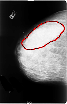 FILE: B_3061_1.RIGHT_MLO.OVERLAY TOTAL_ABNORMALITIES 1 ABNORMALITY 1 LESION_TYPE CALCIFICATION TYPE PLEOMORPHIC DISTRIBUTION REGIONAL LESION_TYPE MASS SHAPE FOCAL_ASYMMETRIC_DENSITY MARGINS N/A ASSESSMENT 5 SUBTLETY 3 PATHOLOGY MALIGNANT TOTAL_OUTLINES 1 BOUNDARY |