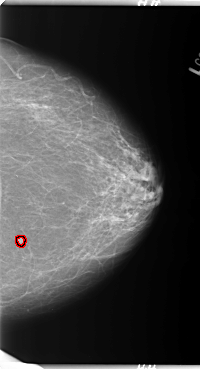 FILE: B_3089_1.LEFT_CC.OVERLAY TOTAL_ABNORMALITIES 1 ABNORMALITY 1 LESION_TYPE MASS SHAPE ROUND MARGINS CIRCUMSCRIBED ASSESSMENT 4 SUBTLETY 4 PATHOLOGY MALIGNANT TOTAL_OUTLINES 1 BOUNDARY |