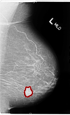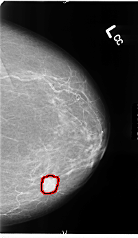 FILE: B_3108_1.LEFT_CC.OVERLAY TOTAL_ABNORMALITIES 1 ABNORMALITY 1 LESION_TYPE MASS SHAPE ROUND MARGINS SPICULATED ASSESSMENT 4 SUBTLETY 5 PATHOLOGY MALIGNANT TOTAL_OUTLINES 1 BOUNDARY |