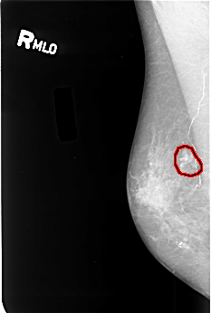 FILE: B_3380_1.RIGHT_CC.OVERLAY TOTAL_ABNORMALITIES 1 ABNORMALITY 1 LESION_TYPE CALCIFICATION TYPE PUNCTATE-PLEOMORPHIC DISTRIBUTION CLUSTERED LESION_TYPE MASS SHAPE IRREGULAR MARGINS ILL_DEFINED ASSESSMENT 4 SUBTLETY 3 PATHOLOGY MALIGNANT TOTAL_OUTLINES 1 BOUNDARY |