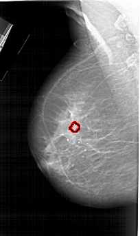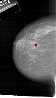 FILE: A_1728_1.LEFT_MLO.OVERLAY TOTAL_ABNORMALITIES 1 ABNORMALITY 1 LESION_TYPE CALCIFICATION TYPE PLEOMORPHIC DISTRIBUTION CLUSTERED ASSESSMENT 4 SUBTLETY 2 PATHOLOGY MALIGNANT TOTAL_OUTLINES 1 BOUNDARY |