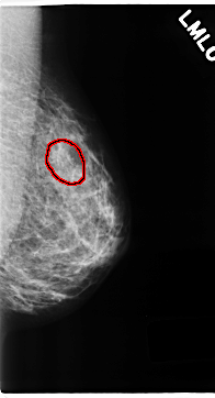 FILE: C_0199_1.LEFT_MLO.OVERLAY TOTAL_ABNORMALITIES 1 ABNORMALITY 1 LESION_TYPE CALCIFICATION TYPE PLEOMORPHIC DISTRIBUTION CLUSTERED ASSESSMENT 5 SUBTLETY 4 PATHOLOGY MALIGNANT TOTAL_OUTLINES 1 BOUNDARY |