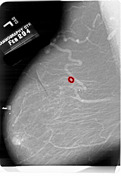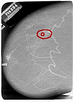 FILE: A_1701_1.LEFT_CC.OVERLAY TOTAL_ABNORMALITIES 1 ABNORMALITY 1 LESION_TYPE MASS SHAPE IRREGULAR MARGINS SPICULATED ASSESSMENT 5 SUBTLETY 3 PATHOLOGY MALIGNANT TOTAL_OUTLINES 2 BOUNDARY CORE |