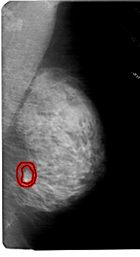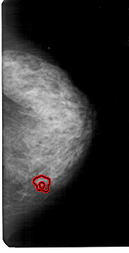 FILE: A_1985_1.RIGHT_MLO.OVERLAY TOTAL_ABNORMALITIES 1 ABNORMALITY 1 LESION_TYPE MASS SHAPE IRREGULAR MARGINS SPICULATED ASSESSMENT 5 SUBTLETY 2 PATHOLOGY MALIGNANT TOTAL_OUTLINES 2 BOUNDARY CORE |